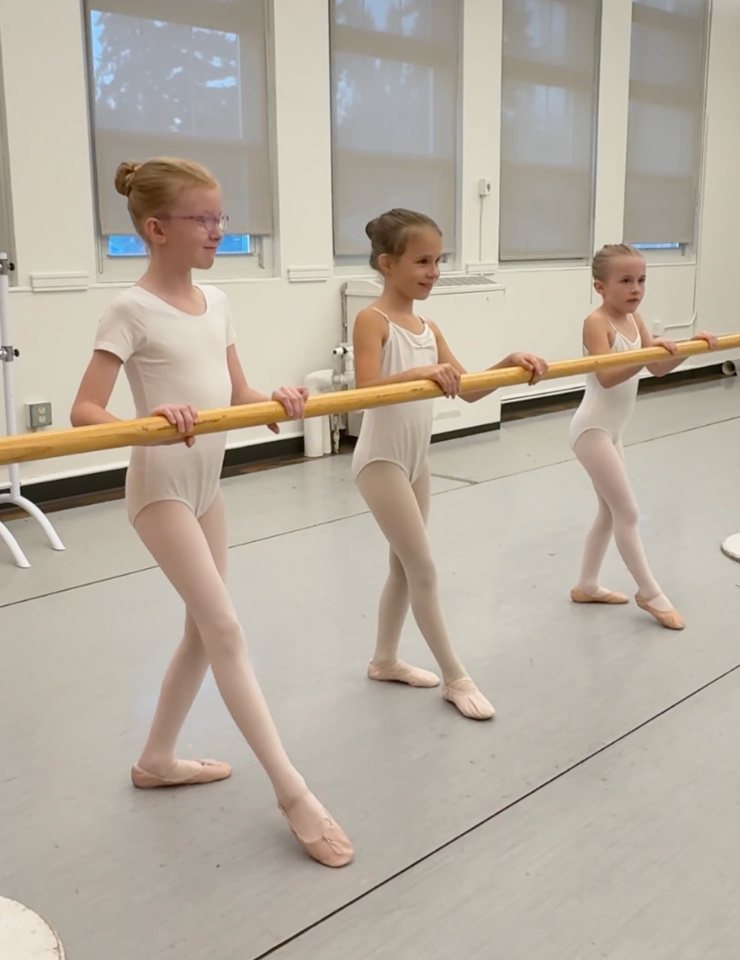 Classes are twice per week with an increased focus on developing attention span with longer classes, and a focus on ballet class etiquette. Extended barre work is introduced as well as elementary combinations in the center, and there is a continued emphasis on increasing flexibility, strength, coordination, and musicality.